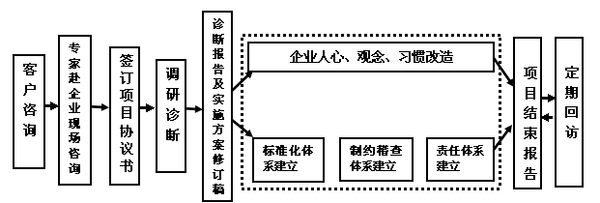 公司派出专家组长期进驻企业(至少四个月),教练式辅导,既教又练,直至养成习惯。在工作中、管理活动开展中训练员工的好习性,集咨询、培训、训练三位一体。